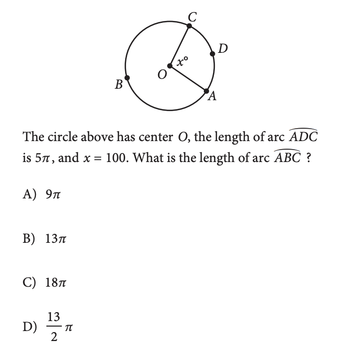 If the total circumference is 18π, and arc ADC is 5π, then arc ABC is equal to 18π-5π=13π.
