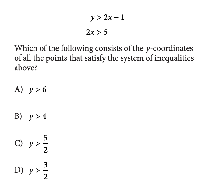 From the second inequality, we know that 2π₯ > 5. So, 2π₯ cannot be smaller than 5, 5 is the lower bound. Since the first equality is describing the smallest value y can be, we can replace 2π₯ with it's lower bound of 5.