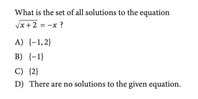 There will be some questions that will ask you which values for a variable make an equation true. Sometimes, it will be easiest to solve the equation, but other times it's easier to just plug in values and test to see what works.