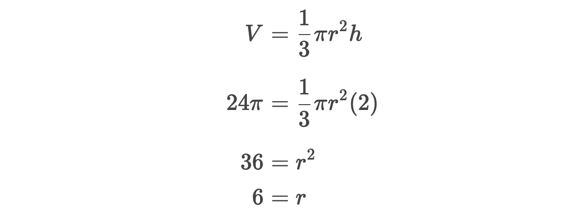 The one thing you should always make sure to check is that your units are all the same. In this problem, our volume was in cubic inches and our base was in inches, so our radius will also be in inches.